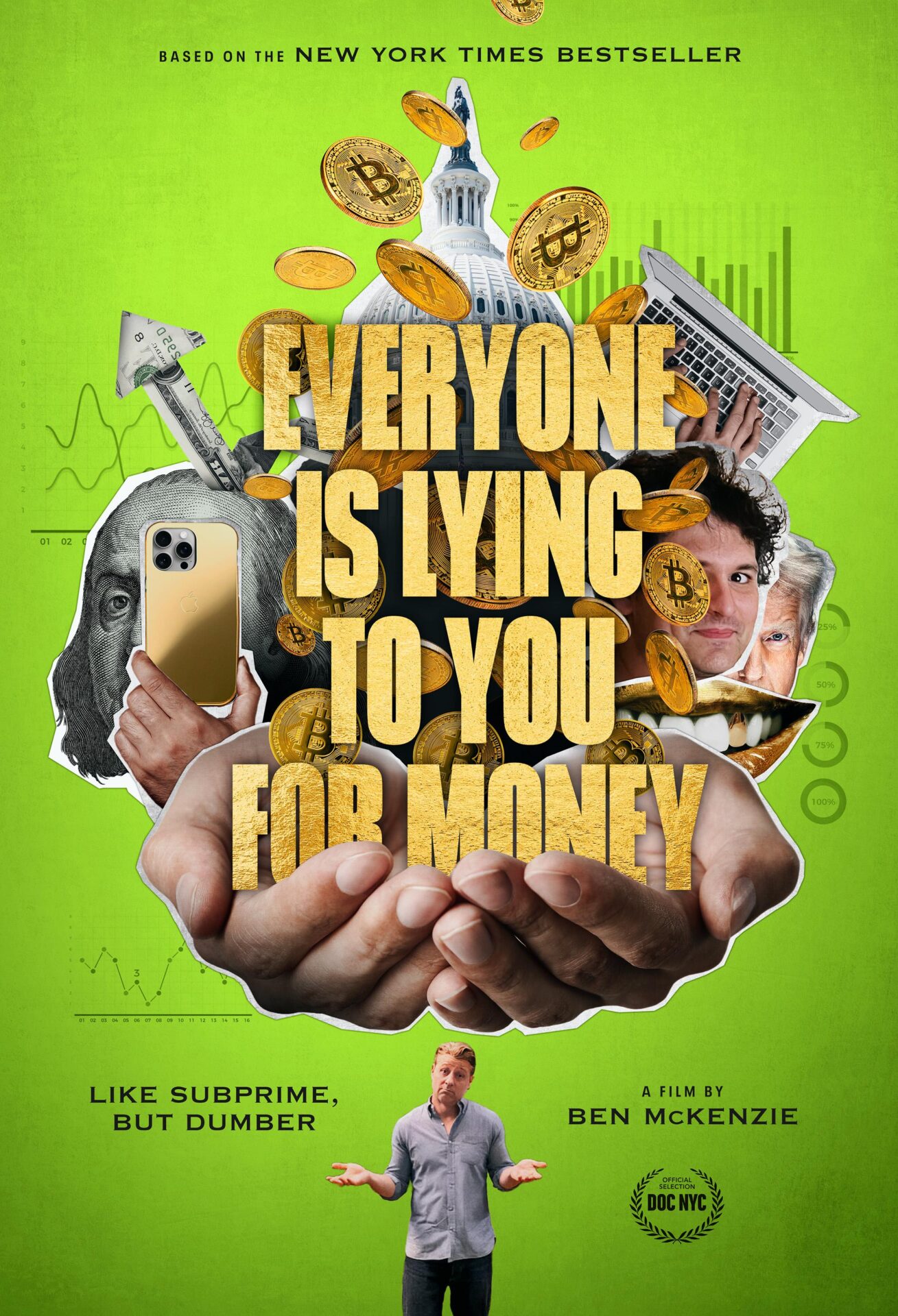 Everyone Is Lying to You for Money: Directed by Ben McKenzie. With Morena Baccarin, Sam Bankman-Fried, Nayib Bukele, Alex Mashinsky. Ben McKenzie explores cryptocurrency in his directorial debut, moving from curiosity to exposing harsh truths. His documentary both educates and entertains while delivering a powerful critique of the crypto world.
